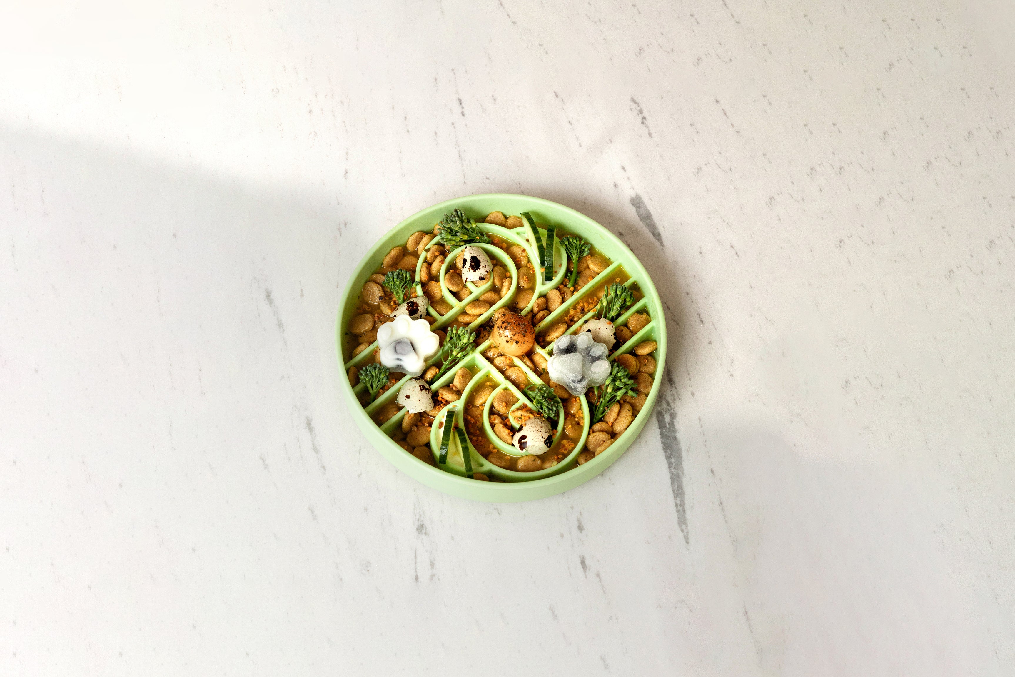 Ever since I was little, I loved food so much that I tried to eat it as fast as I could. Later, I learned that this was bad for my tummy so mom and dad got me something called a slow feeder bowl so I could pace myself. Meal times have been so much more fun and exciting since then!