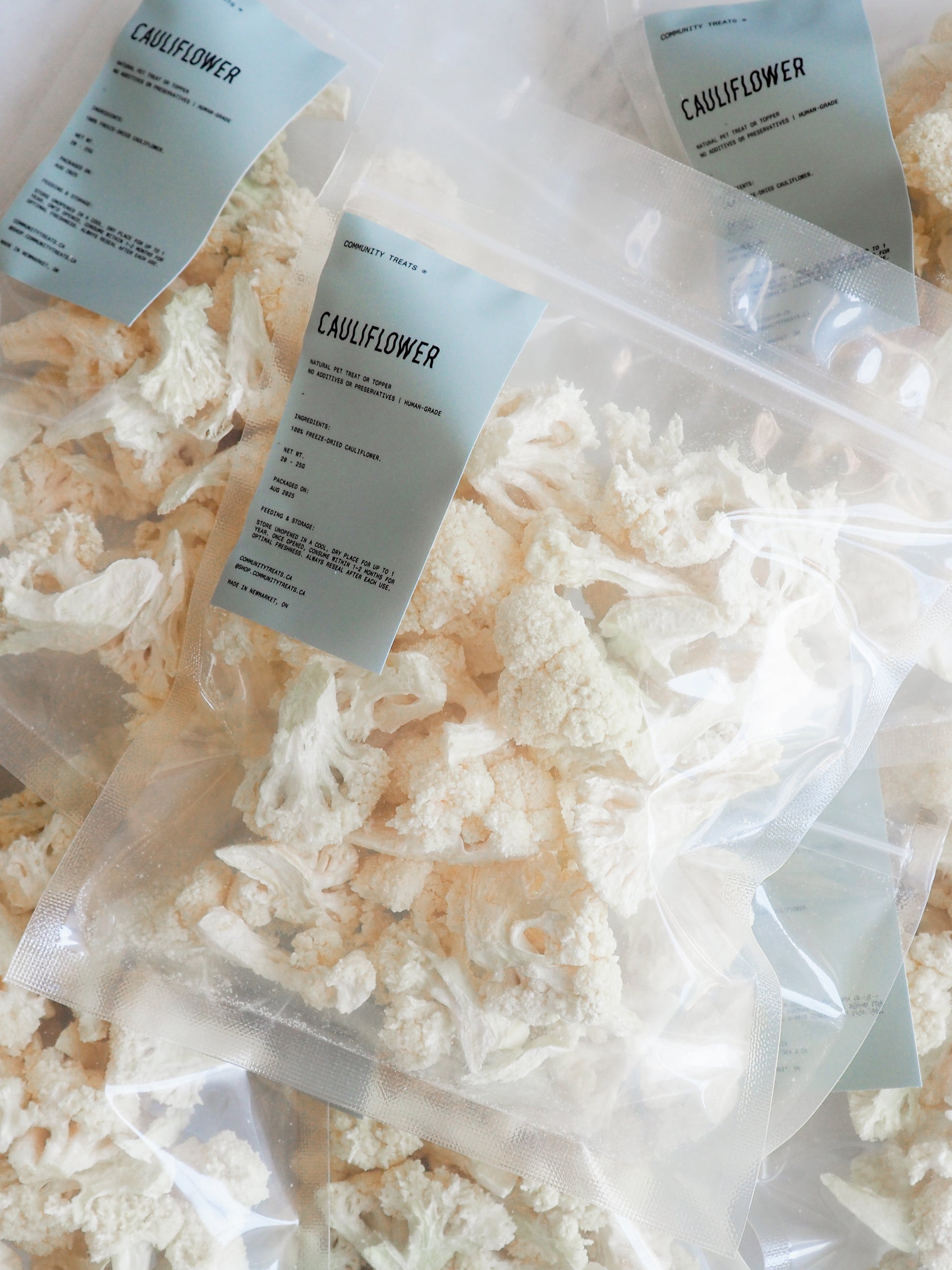Treat your furry friend to our freeze-dried cauliflower, sourced from trusted Canadian suppliers. These human-grade, nutrient-rich treats are brimming with vitamins C and K, fibre, and antioxidants, enhancing immune function and promoting digestive health. The freeze-drying process retains the natural flavour and nutrients, creating a crunchy and delectable snack your pet will love.