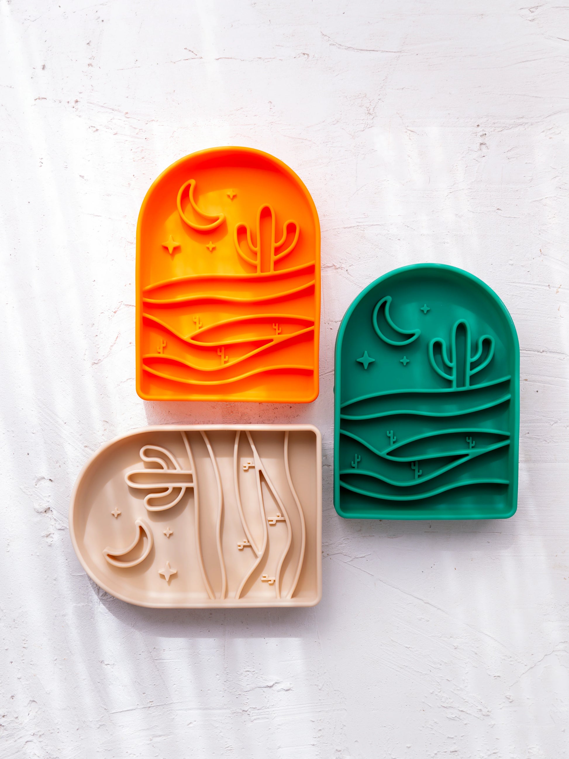 The Desert Moon bowl is made with 100% BPA-free food grade silicone. These bowls are dishwasher friendly and microwave safe. When handwashing, we recommend using a bristled brush for a thorough clean. 1 large suction cup on the bottom prevents travel during mealtime.