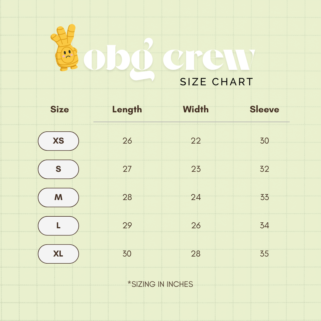 Our love for crewnecks has finally manifested!! The official OBG crew is oversized, and ready for your everyday wear - whether it be during enrichment prep, a long walk with your pup or a movie-night in. We've added so many little carefully embroidered touches to this piece that we know you'll love!