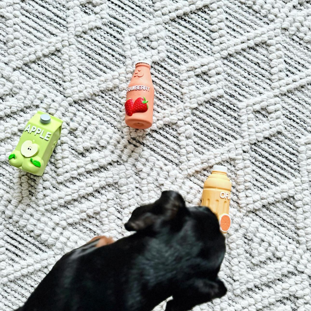 what's a summer picnic without some good drinks!? we'll bring the snacks and actual beverages but ollie's got you covered on this summer sips collection of juice inspired squeaker toys!
