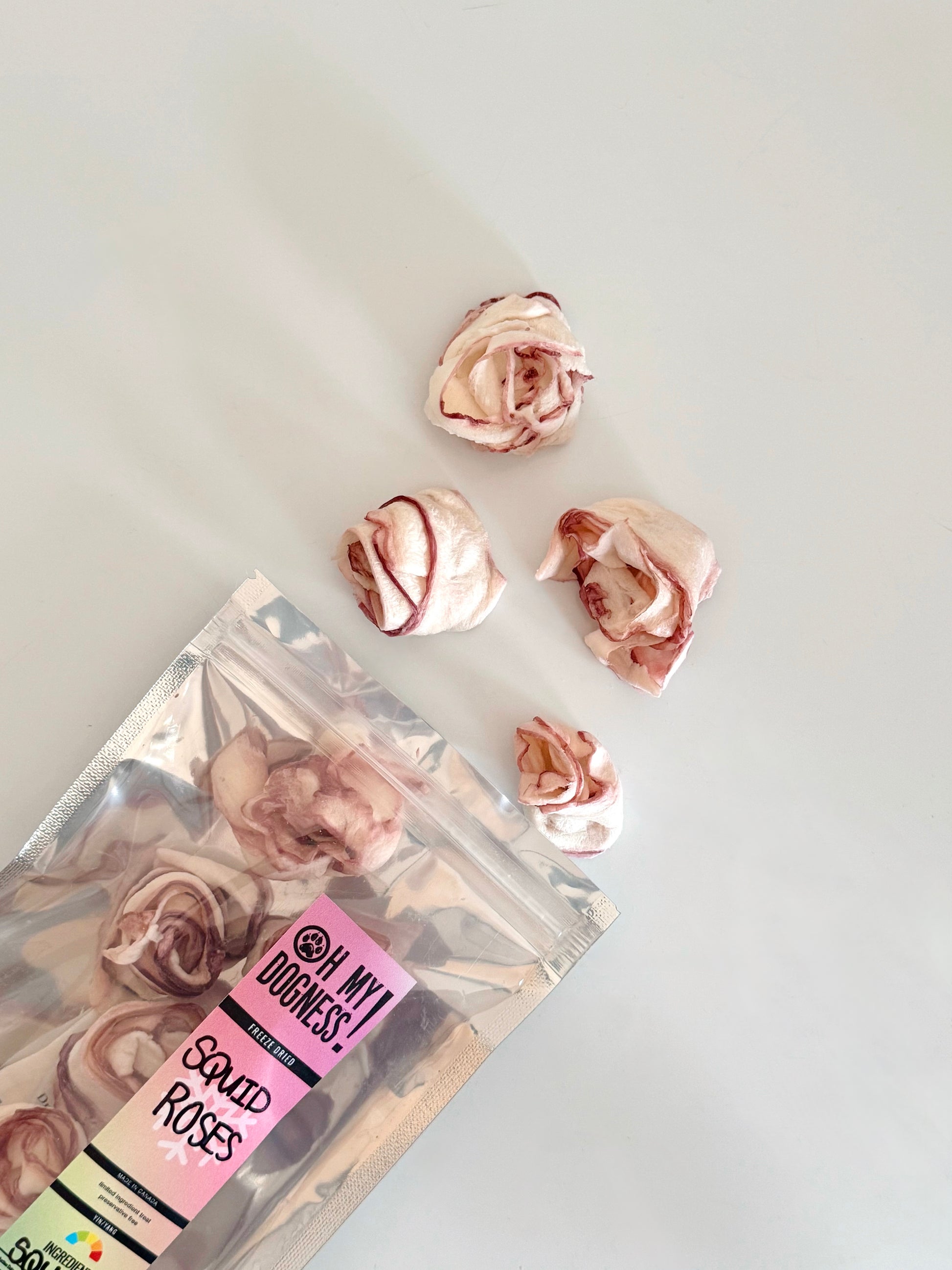 Presenting our new freeze dried squid tentacles (in a beautiful rose)! We have been wanting to add this to our line up for a while now...and what better time than now!
