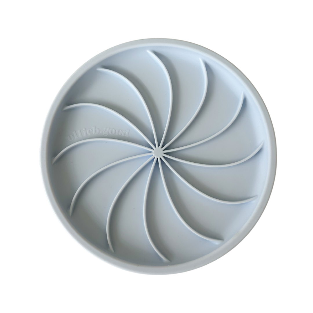 The wheelies lick mat & lid measures 7.5” in diameter and 1.5cm tall. It is designed to fit perfectly on top of our Zoomies Slow Feeder bowl.