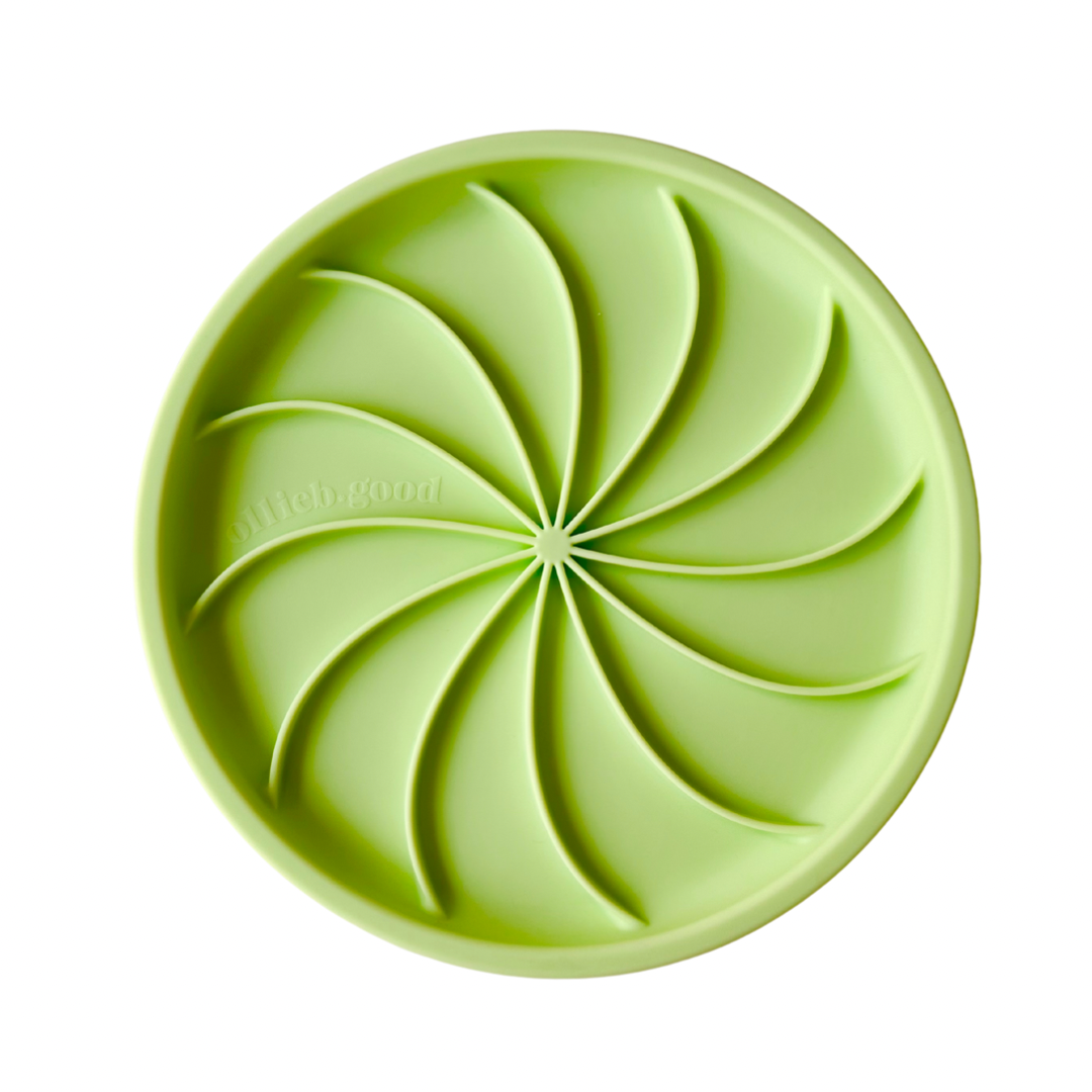 The wheelies lick mat & lid measures 7.5” in diameter and 1.5cm tall. It is designed to fit perfectly on top of our Zoomies Slow Feeder bowl.