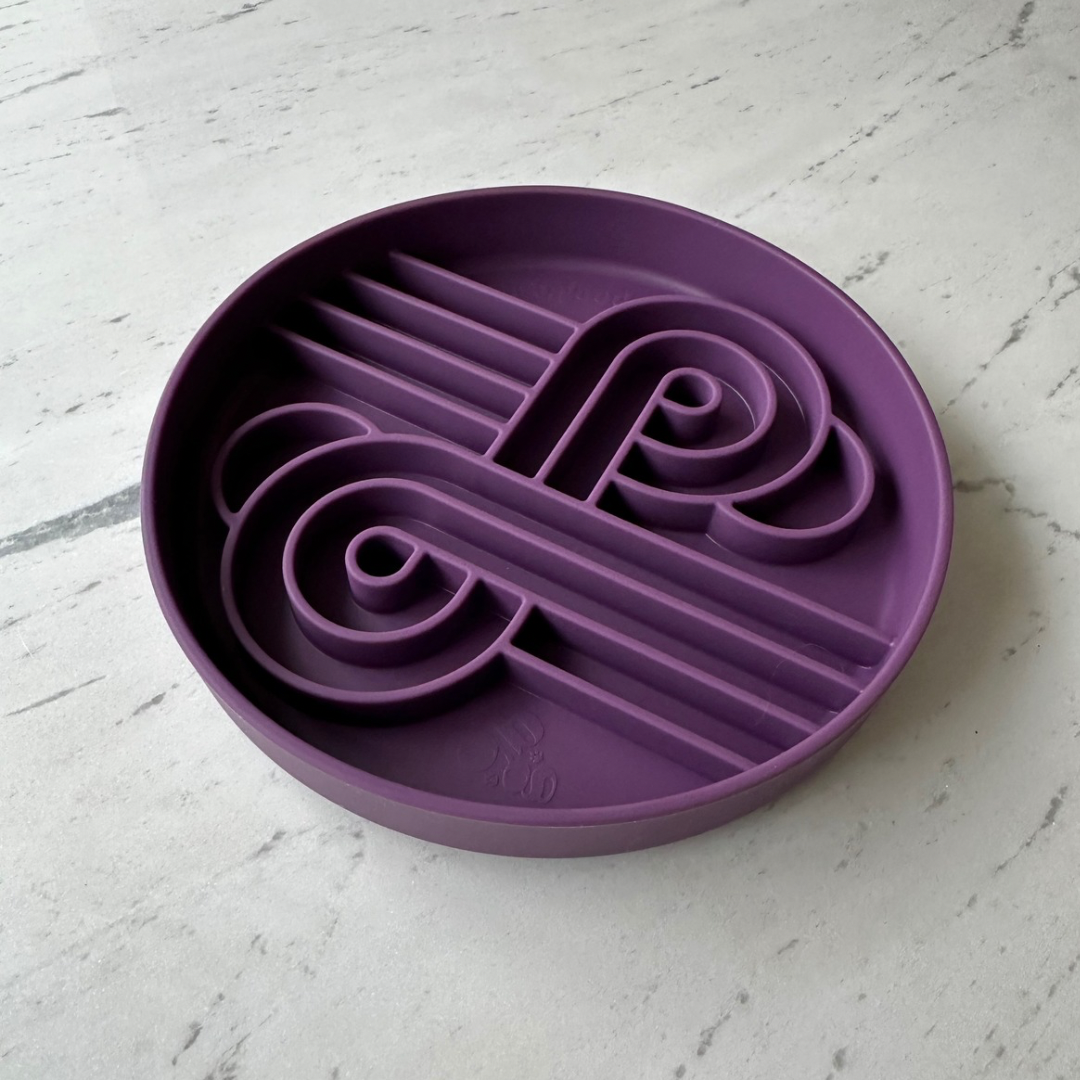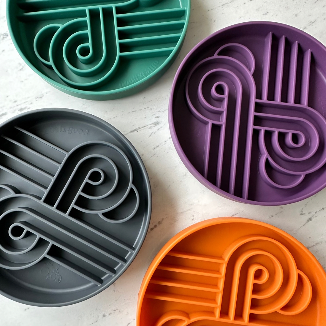 The Zoomies Slow Feeder was designed in-house, keeping all size breeds in mind. Named after it's fun race-track design!